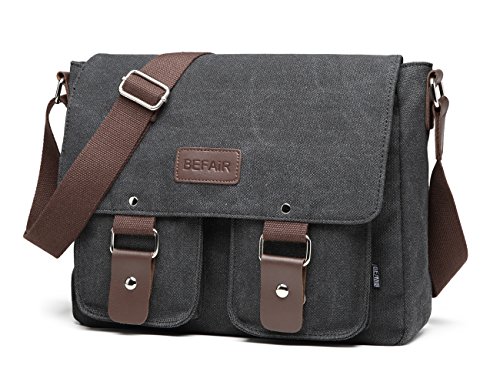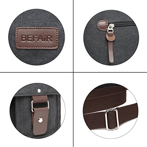 -. Title : BEFAiR Canvas Messenger Bag Vintage Shoulder Bag Laptop Bag School Bag Bookbag Travel Bag for Men and Women