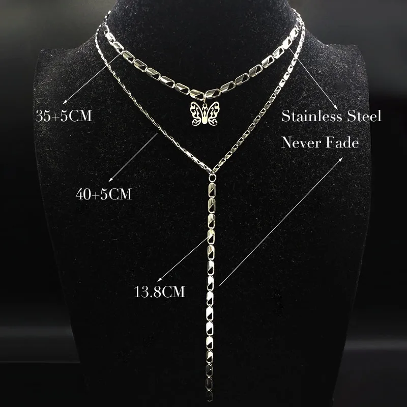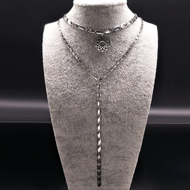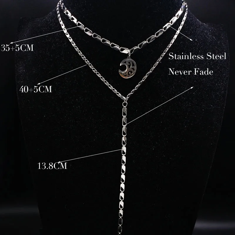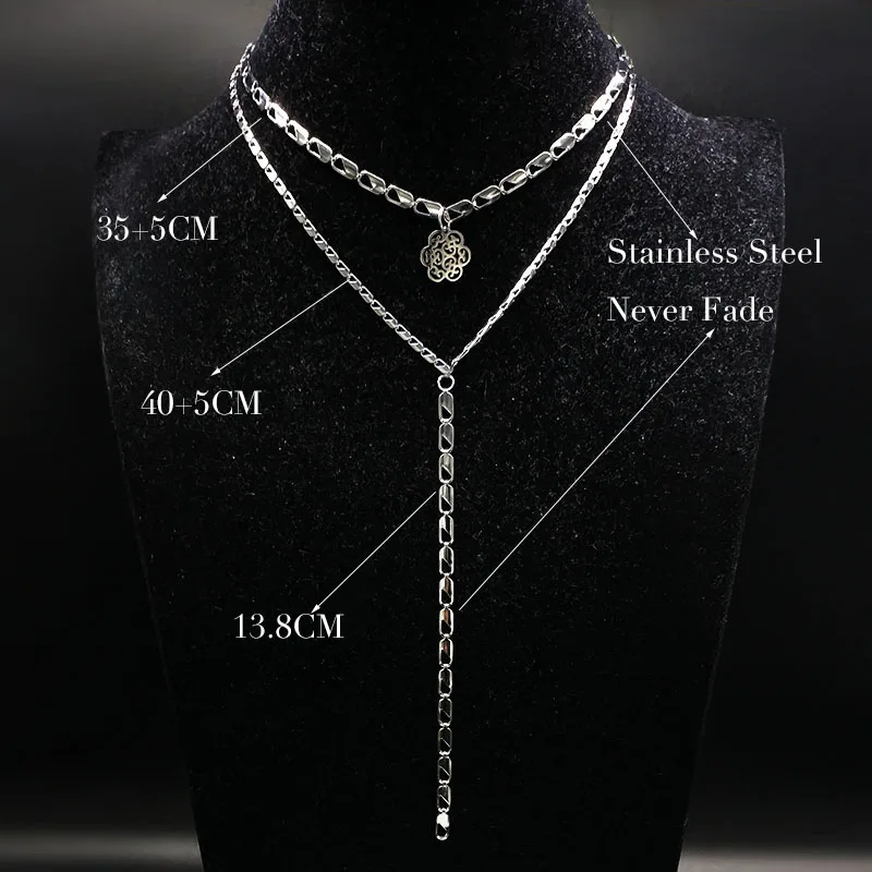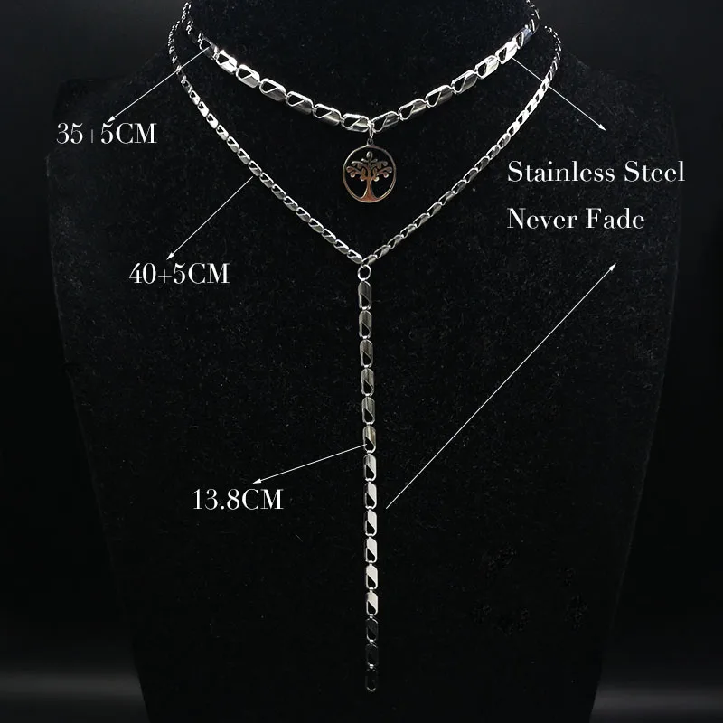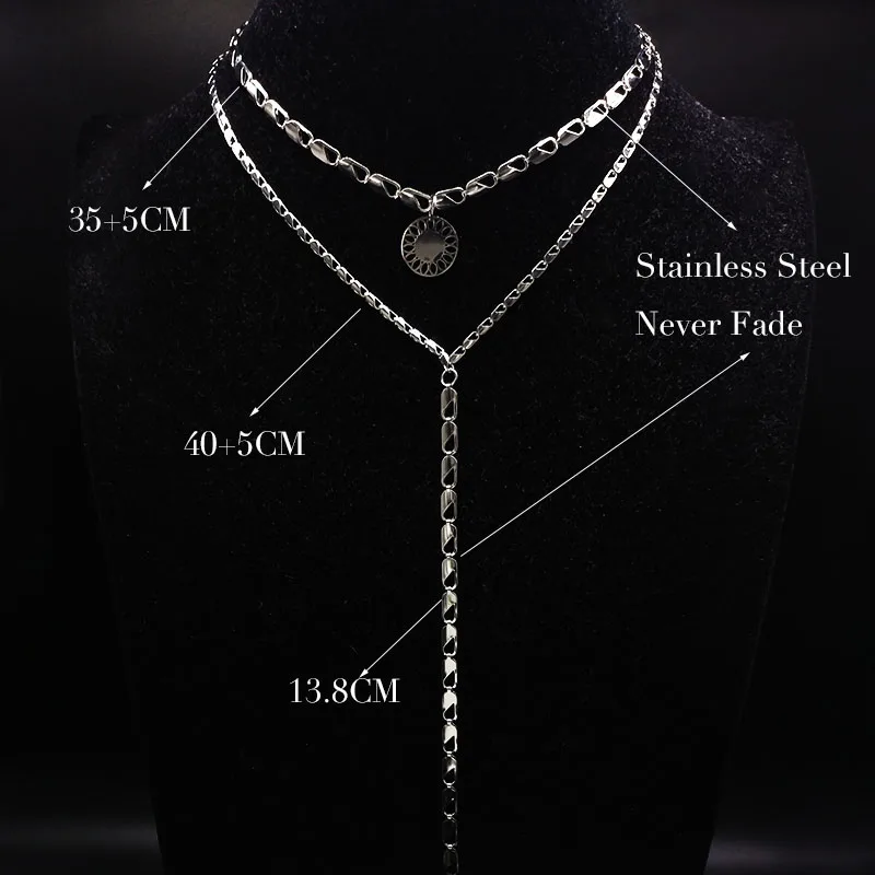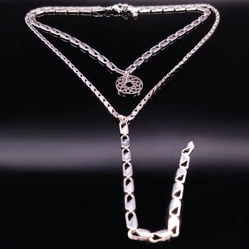 Pendant Necklace:Double Layer Stainless Steel Necklace