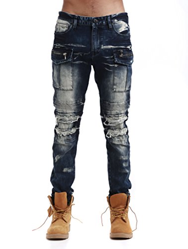 -. Title : Smoke Rise Men's Stretch Slim Fit Moto Cargo Biker Denim Jeans
