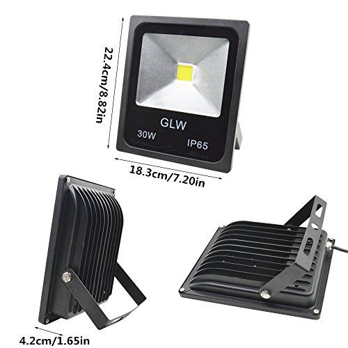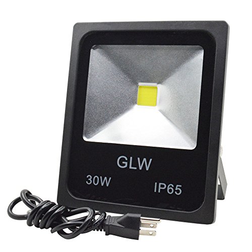 GLW 30w LED Flood Lights Outdoor Security Light, Daylight White Waterproof Floodlight Lamp 3000lm 200w Halogen Bulb Equivalent [Added Plug]