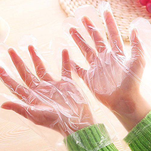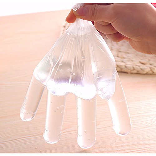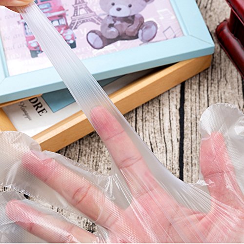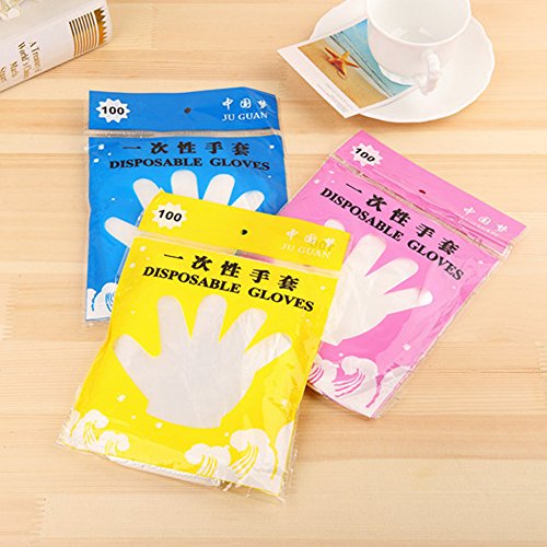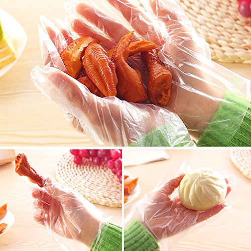 Disposable Gloves (Pack of 3/Total 300 PCS) Disposable Gloves Food , Disposable Thin Poly PE Gloves Food Service Safety Glove 1.25 Mil Thickness Powder & Sulfur Free