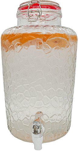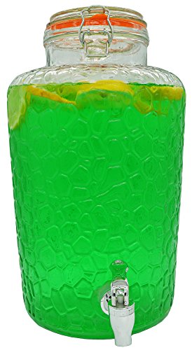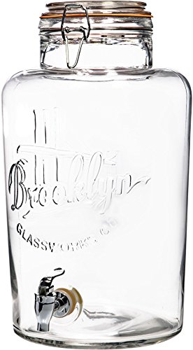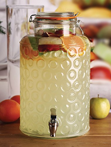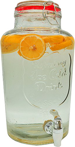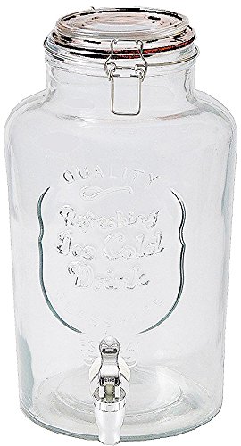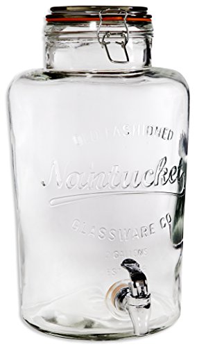 Palais Glassware Clear Glass Beverage Dispenser with Bail & Trigger Locking Lid - 2 Gallon ('Nantucket' Embossed)
