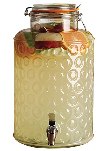 Palais Glassware Clear Glass Beverage Dispenser with Bail & Trigger Locking Lid - 2.5 Gallon (Circle Pattern)
