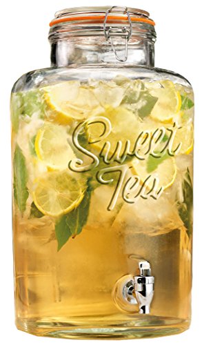 Palais Glassware Clear Glass Beverage Dispenser with Bail & Trigger Locking Lid - 2 Gallon ('Sweet Tea' Embossed)