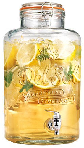 Palais Glassware Clear Glass Beverage Dispenser with Bail & Trigger Locking Lid - 2 Gallon ('Del Sol' Embossed)