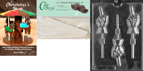 Cybrtrayd 'Finger Lolly' Adult Chocolate Candy Mold with 50 4.5-Inch Lollipop Sticks and Chocolatier's Guide