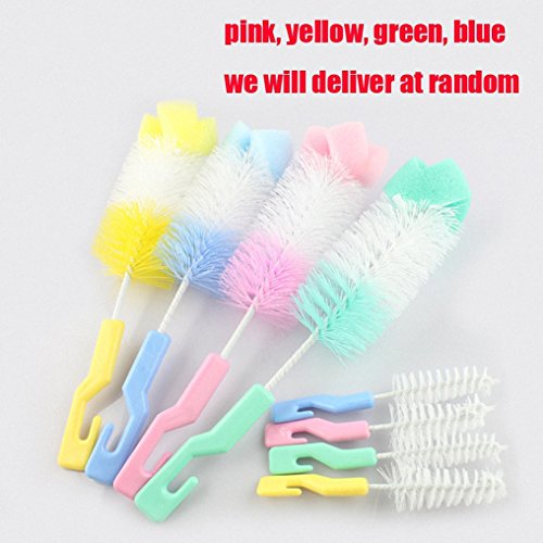 -. Feature : Made from FDA certified material and BPA free, this cleaning kit special designed suits for different baby bottles.( It contains 2 big brushes and 2 small ones, pink, yellow, green, blue, deliver at random color) / Hard dense bristle clean tough spots in the bottle, and the head soft memorable sponge touches every spots in the bottle thoroughly and leaves no scratch. / The small size brush covers the insides of the bottle cap and nipple reaching narrow and swirl places making sure bottles bacteria free. / Non-slip handles made from Eco-friendly PP, 360 degree rotation make sure reaching the bottom and every corners with excellent grips. / 30 Day Hassle Free Money Back Guarantee. If you have any questions about our products please contact us via Amazon message, we will reply you in 24 hours.