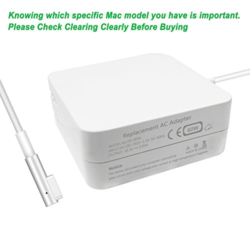 -. Title : Macbook Pro Charger,Aonear Replacement 60W Magsafe Magnetic L-Tip Power Adapter Charger for Macbook and Macbook Pro 13-inch (Before Mid 2012 Models)