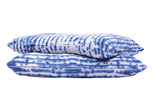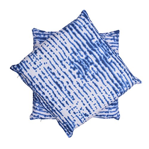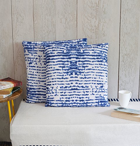 Trendy White Throw Pillow Cushion Covers for Sofa 18 x 18 Set of 2 Cases 100% Cotton with Printed Blue Shades Home Bedding Decor