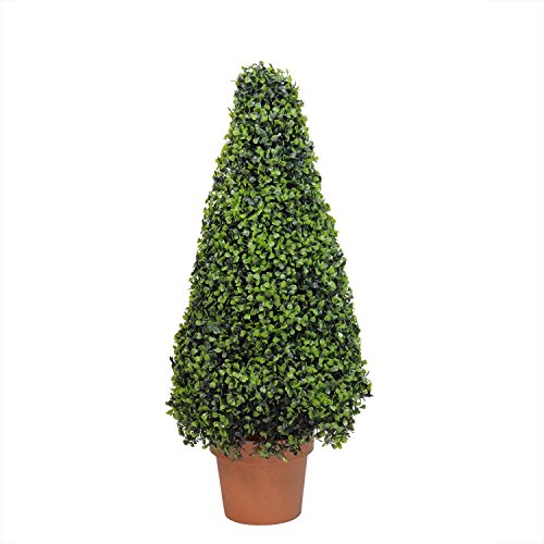 Northlight 32.5" Potted Two-Tone Artificial Boxwood Tower Cone Topiary Tree