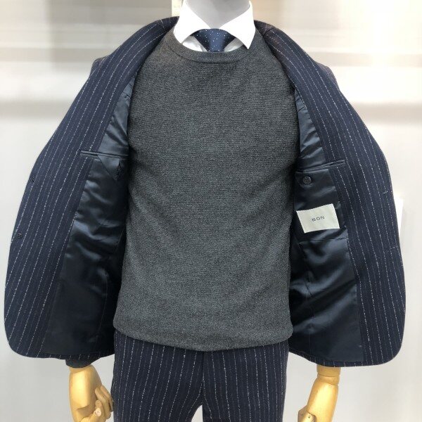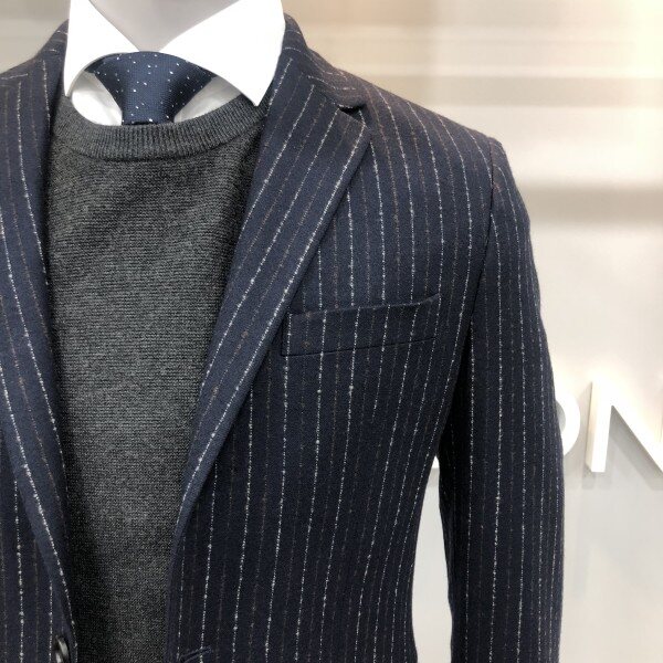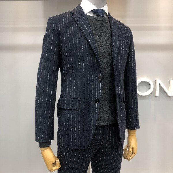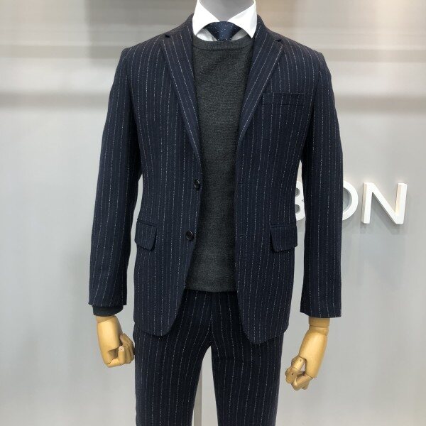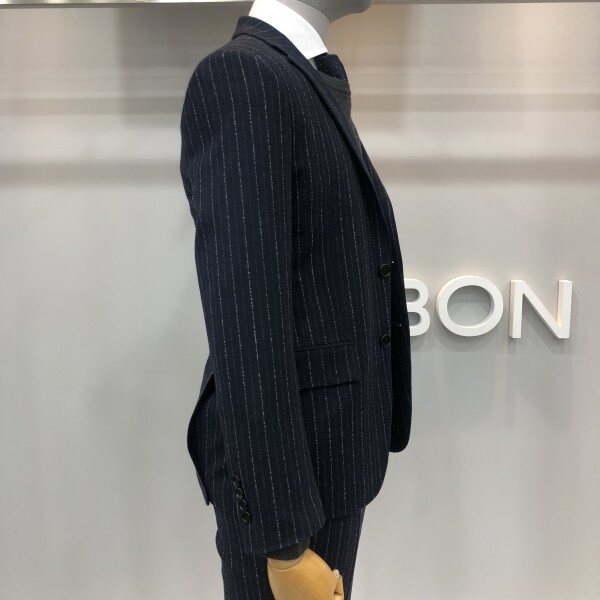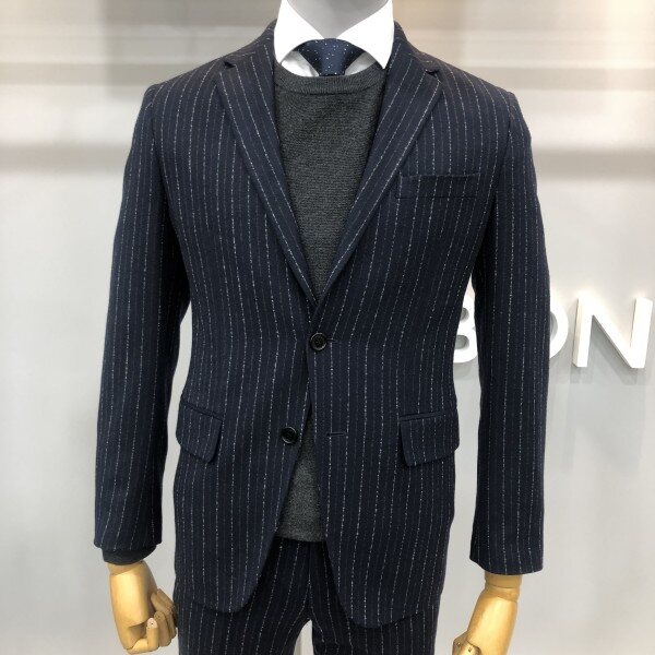 본 17F/W 네이비 라이크라 울 스트라이프 모직 혼방 자켓