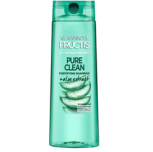 Garnier Fructis Pure Clean Shampoo: paraben & silicone-free formula with Aloe Extract & Vitamin E cleans your hair with the goodness your hair wants for beautiful, healthier hair at every wash. • Fortifying silicone free Shampoo with Aloe Extract • Paraben-free, gentle for everyday use • Vegan formula: no animal derived ingredients or by-products • Produced in a facility committed to sustainability Fructis formulas with Active Fruit Protein, an exclusive combination of citrus protein, Vitamins B3 and B6, fruit and plant derived extracts and strengthening conditioners for healthier, stronger hair. Massage onto wet hair, lather and rinse thoroughly. Follow with paraben free Garnier Fructis Pure Clean conditioner.Feature