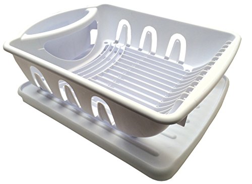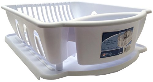 Product Description White Sterilite 2pc Sink Set Dish Rack Drainer Kitchen Storage Organization 21 x 15 x 6 inches makes it ideal for family use Inclined drainboard ensures excess water to flow into sink Flatware holder with drain holes to prevent water from pooling Perimeter cup holders 0