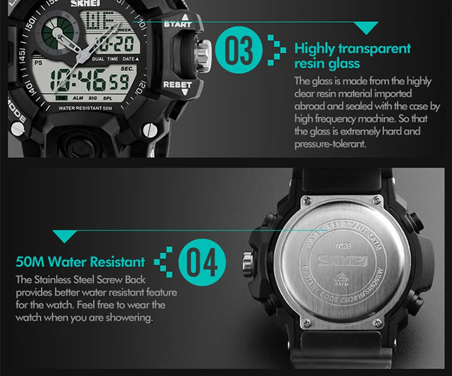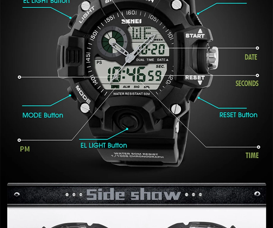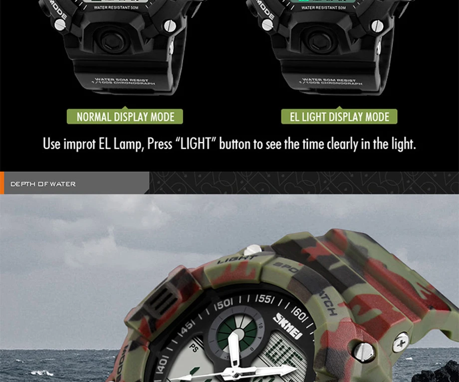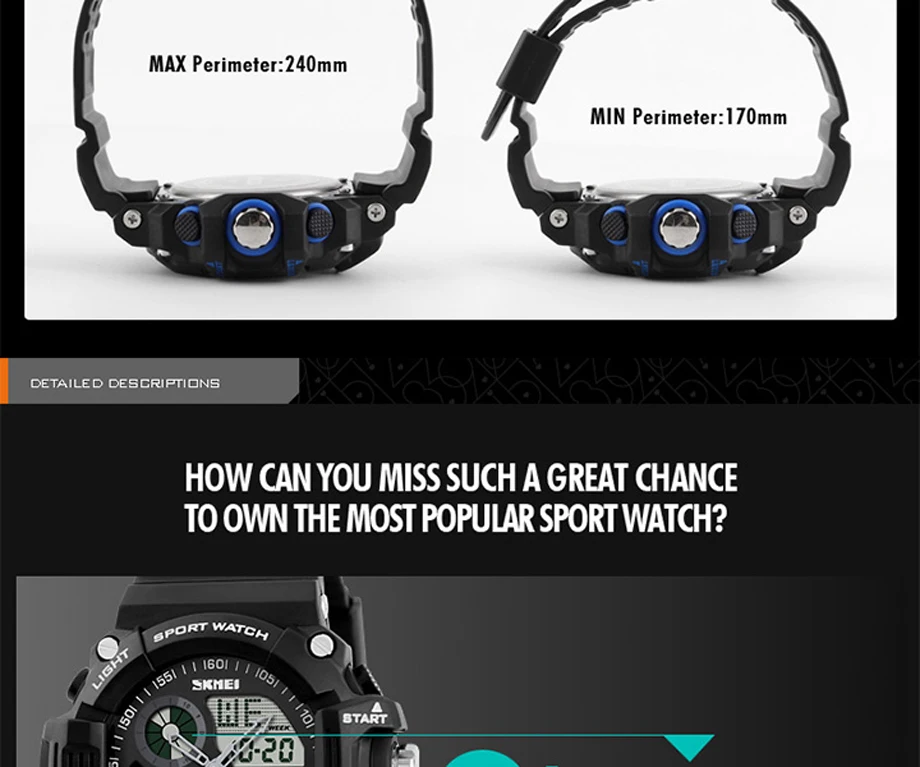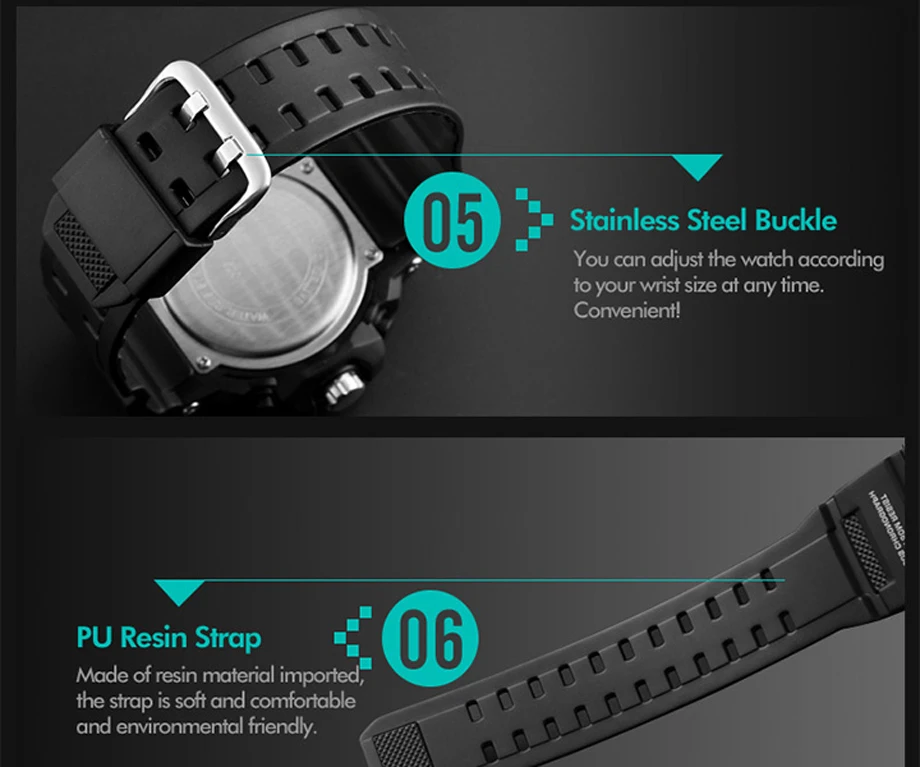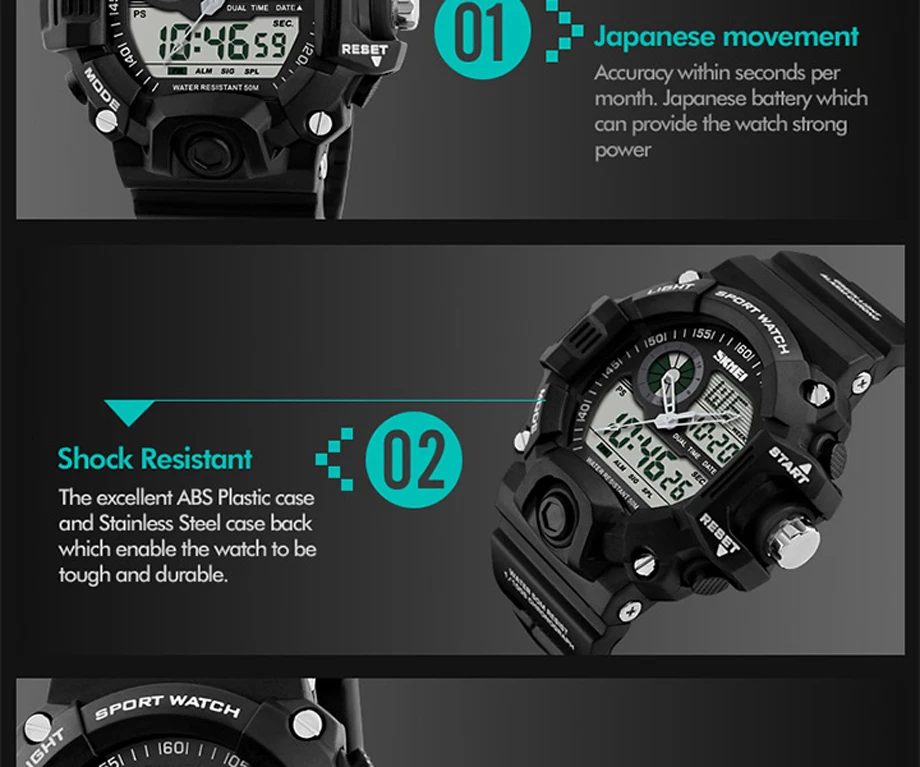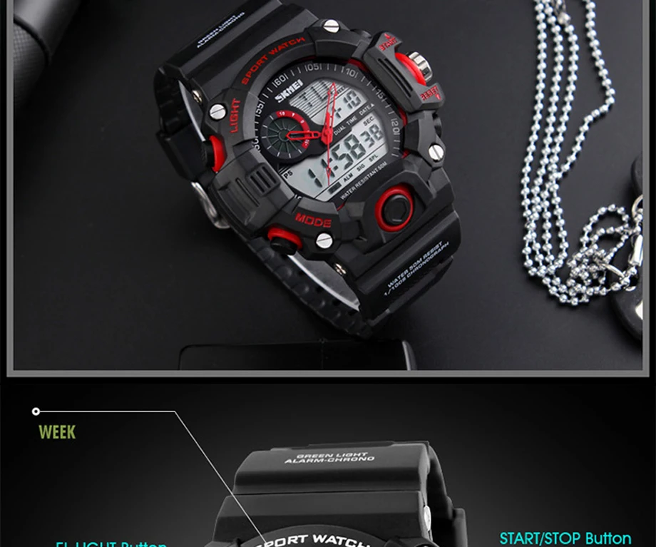 Feature:Auto Date,Shock Resistant,Week Display,Water Resistant,Stop Watch,Back Light,Alarm