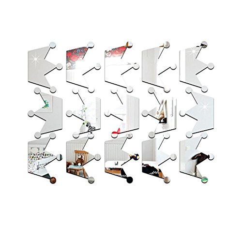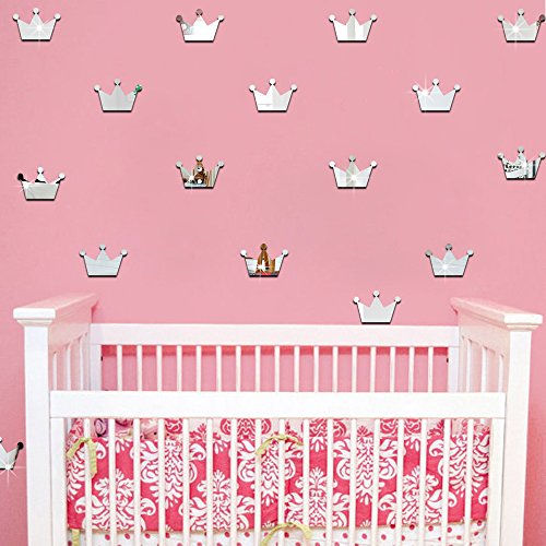 Ufengke 15-Pcs 3D Silver Princess Crown Mirror Effect Wall Decals,Children's Room Nursery Removable Wall Stickers Murals
