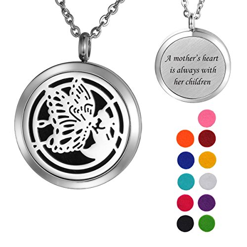VALYRIA Butterfly Angel Aromatherapy Essential Oil Diffuser Necklace,Stainless Steel Locket with "A mother's heart is always with her children" Engraved...