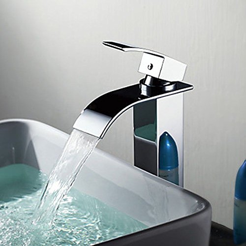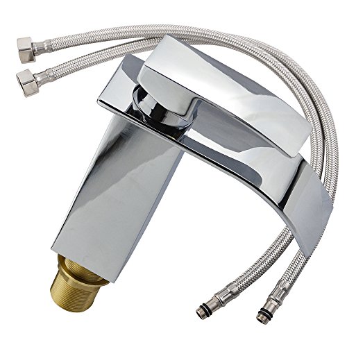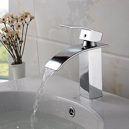 TANBURO Bathroom Faucet Single Handle Contemporary Vanity Sink Faucet Waterfall Bathroom Lavatory Faucet with Extra Large Rectangular Spout (Chrome Finish)