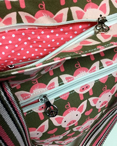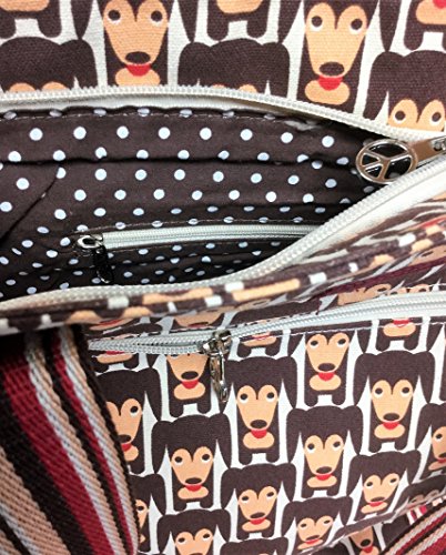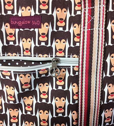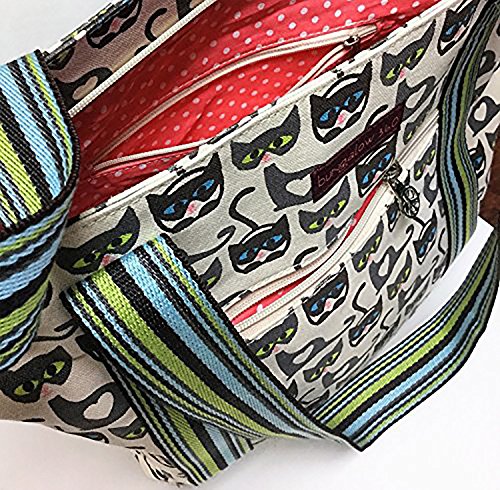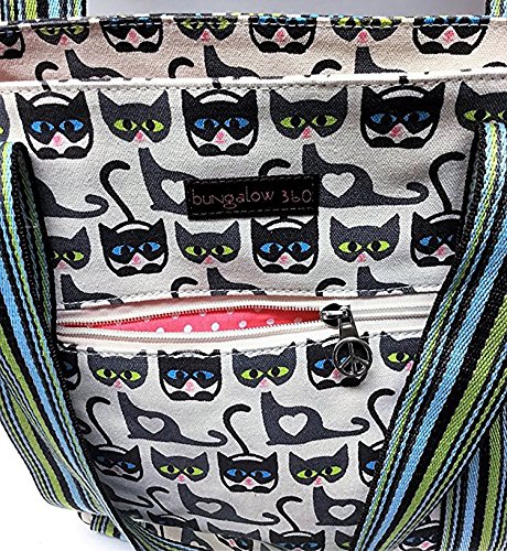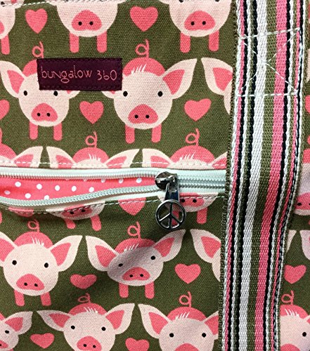 -. Feature : Natural durable cotton canvas. 100% Vegan. / Cute polka dot lining. Zipper closure with signature peace sign zip pull. / Outer zipper pocket and 1 interior pocket. / Measures 14''H X 14''/16''W x 4'' D. Strap drop 10''. / Great roomy tote for everyday.