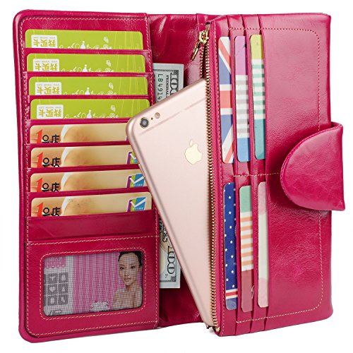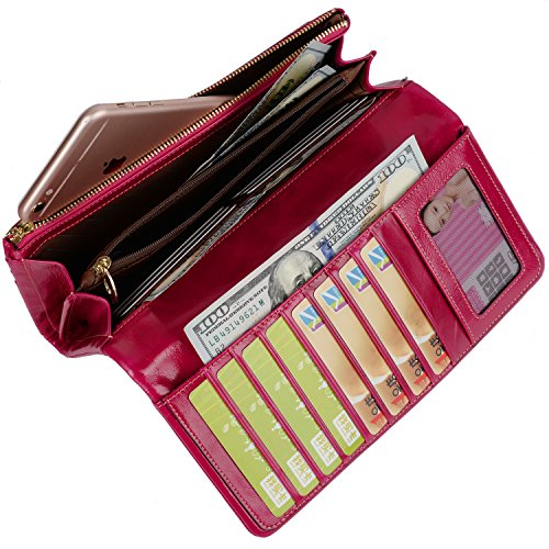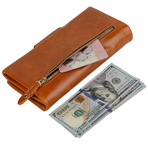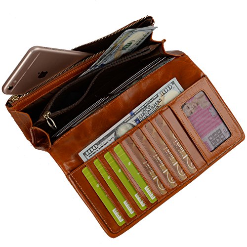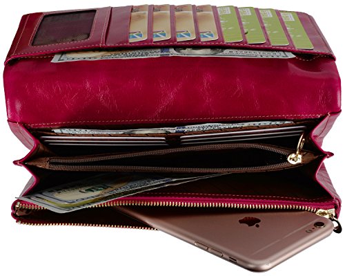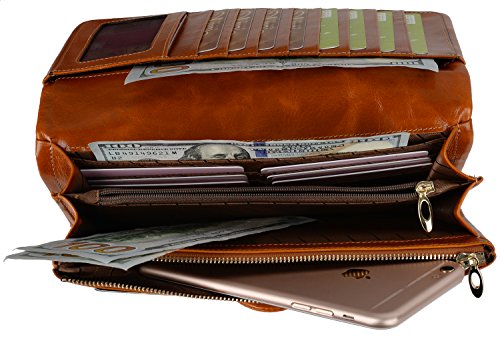 -. Title : Yaluxe Damen 8.66" Höhe gross Leder Clutches Bi-Fold Geldbörse Reisepass Scheckbuch Karte Phone Holder