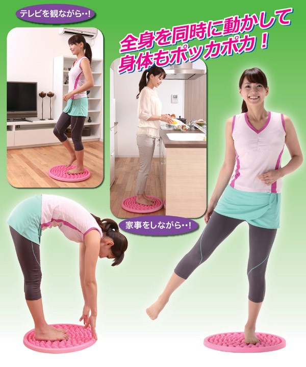 何かとよく耳にするのが「健康は足裏から・・・」。ってことで公園などにも見られる小石を並べた健康歩道を、ご自宅で手軽に使えるようにしたのがこの製品です。ほど良い固さの突起は、円形に配置され強く踏めば強めの刺激、立っているだけなら心地良い程度の刺激です。これなら「痛いのは苦手」という方でも始めることができるでしょう。裏側には滑り止め用シートが取り付けてますので、フローリングなどの床面でも、直接置いてお使いいただけます。