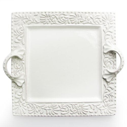 Product Description Add elegance to your table with this square platter from American Atelier. It is made of earthenware and coordinates with the Bianca Leaf dinnerware. 0
