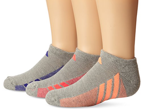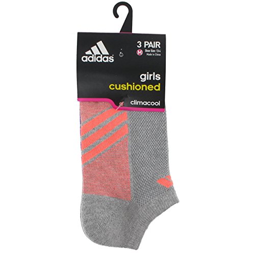 - Title : adidas Girls Cushion No Show Socks (Pack of 3), Heathered Light Onix/Flash Orange - Night Flash Purple - Flash Red, Medium