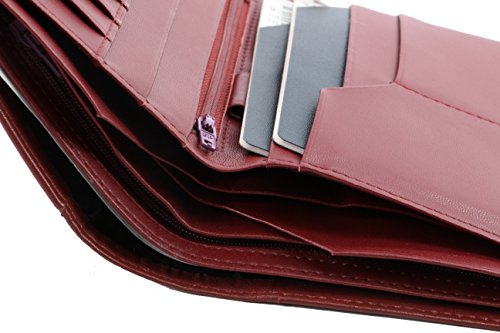 Product Description This elegantly slender genuine sheep leather passport wallet/holder carries your travel essentials all in one place. The thoughtful design features interior space to keep your credit cards, passports, currency, boarding passes and all other travel documents organized while allowing for hands-free portability when just the essentials are needed. 0