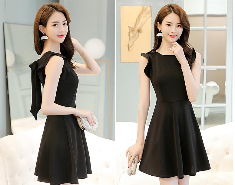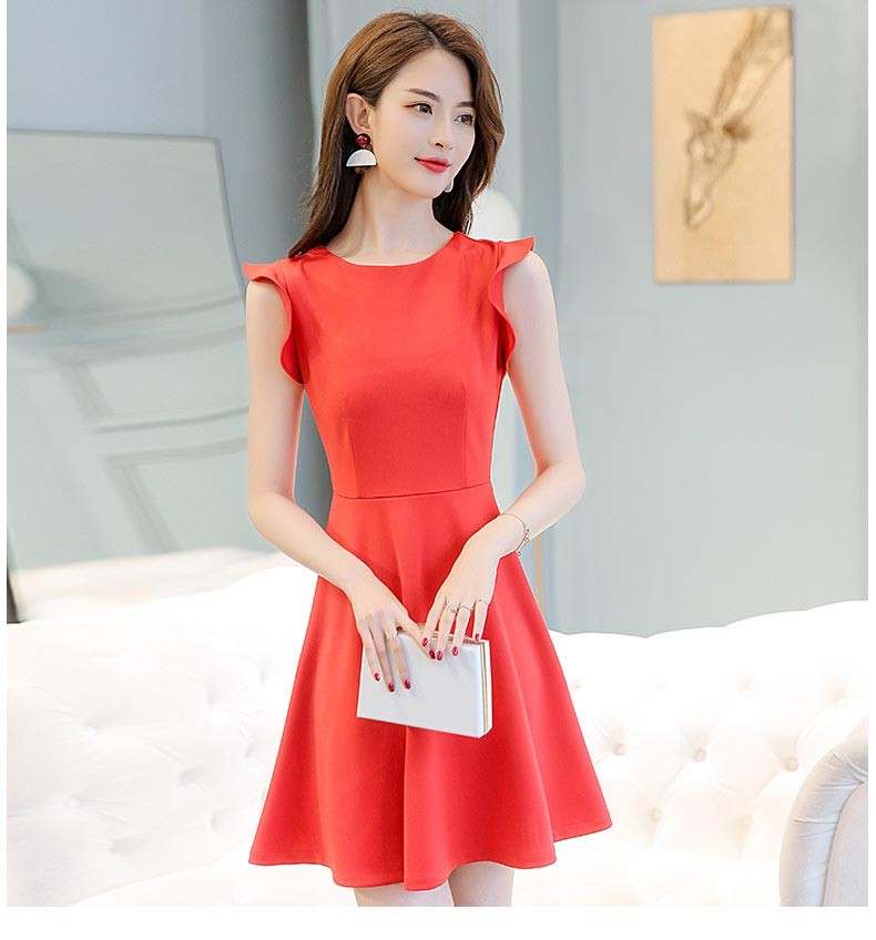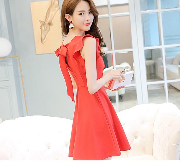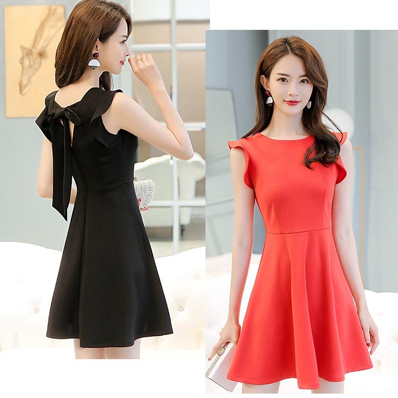 ラウンドネック・フリル袖・ひざ上丈の背中リボンデザインワンピース♪
