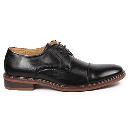 Binding : Apparel Product Description classic colors " Black , Brown " , elegant look dress shoes Featuring Faux Leather upper, leather lining , classic lace up design for secure hold, classic toe design, cushioned footbed for comfort, and synthetic outsole. 0