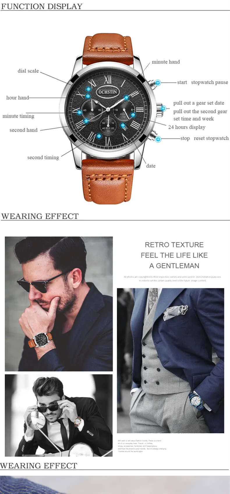 Feature:Water Resistant,Luminous,Auto Date,Complete Calendar,Chronograph