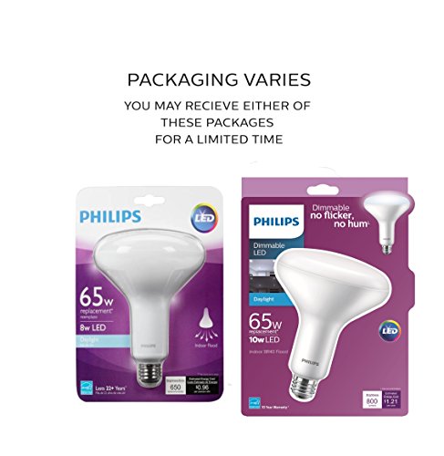 Philips LED br40 dimmable light bulbs are a smart alternative to standard incandescent, featuring a longer life and excellent dimming performance. This Philips 8-watt LED br40 flood light bulb is the perfect Replacement for anywhere flood lights are used, such as recessed cans or track light fixtures. Fully dimmable, this 8W 5000K (daylight) LED flood light provides a cool and refreshing light, perfect for your laundry room, hallway or even your kitchen. .