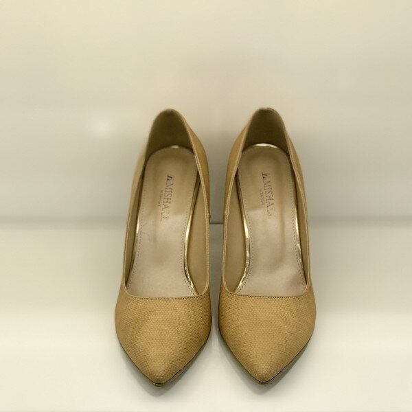 소재: 소가죽굽: 9CM 색상: 베이지노란색이 조금 가미된 베이지 색의 하이힐입니다. 가죽 자체도 육각스판으로 제작되어 다른 제품에 비해 주름이나 흠집이 덜합니다.착화하면 환하게 밝아지는 느낌을 받을 수 있습니다. 스커트, 청바지 등등 모든 캐쥬얼한 옷에 잘어울리며 정장에도 포인트로 신기 좋은 제품입니다.