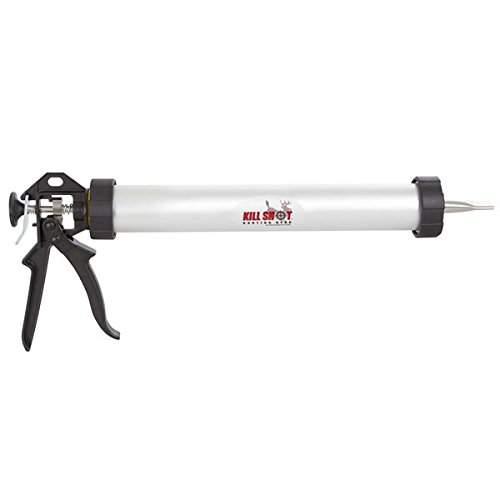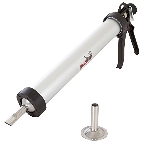 Studio : Discount Ramps Publisher : Discount Ramps Product Description Make delicious jerky from the comfort of your own kitchen with the Kill Shot 15" Aluminum Jerky Gun. This heavy-duty jerky gun is an essential accessory in any hunter's kitchen. To get started, simply fill the barrel of the jerky gun with seasoned ground meat, select either the flat 1-1/8" nozzle or the 1-/2" round nozzle, and squeeze meat onto a tray in flat jerky strips or round snack sticks. 0