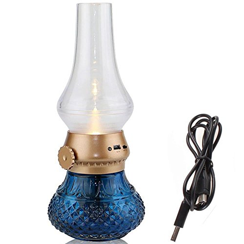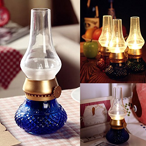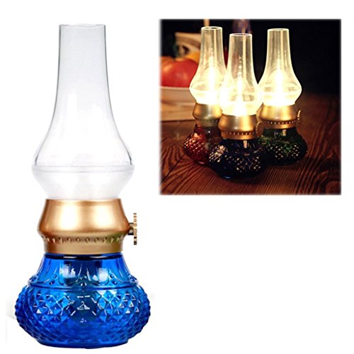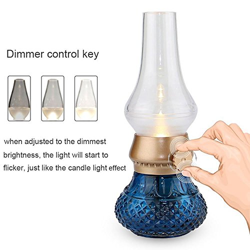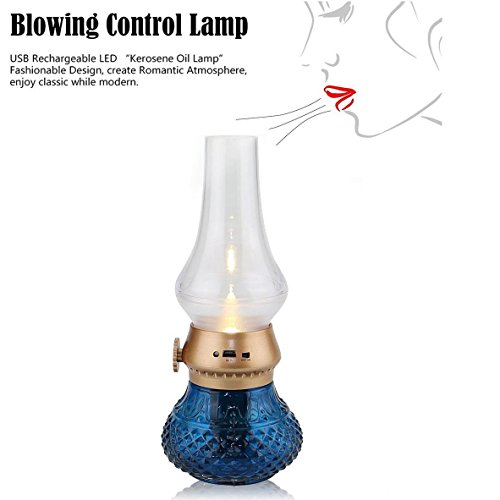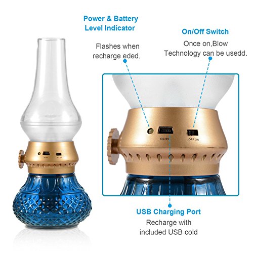 Flameless LED Light, Decorative Rechargeable Flameless Candle Lantern, Vintage Oil Table Lamp with Blow ON/OFF Control, Dimmer Control Key, Kerosene Lamp , Bedside Lamp ,Small Night Light (Blue)