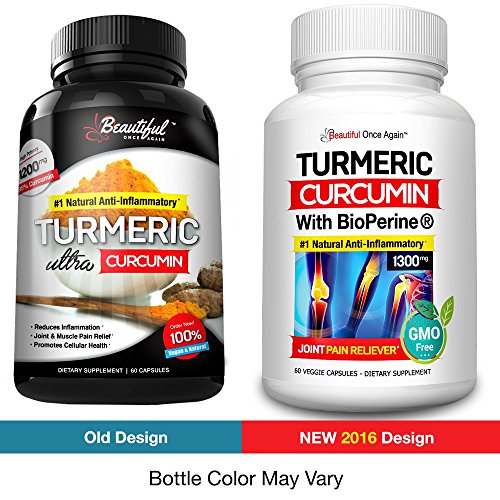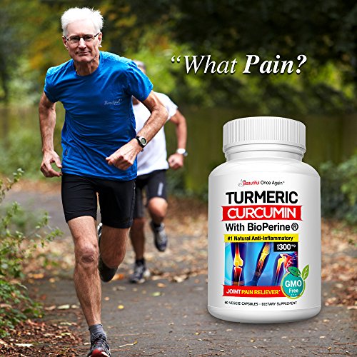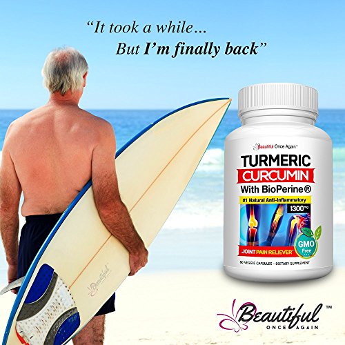 -. Feature : #1 NATURAL ANTI-INFLAMMATORY: our Turmeric Curcumin formula has over 600 potential health benefits * A superior and enhanced antioxidant. 100% Natural, Vegan and MADE in the USA. Research shows that this PURE curcuma root enhance and promotes brain health, cardiovascular, heart, digestion, immune system, eyes, digestive system, skin, blood pressure circulation, sugar balance, weight management, hair loss, memory retention, inflammatory pains and improve a more healthy nutrition function. / FAST Absorption with BioPerine ® GREAT for back pain, neck pain, knee pain, sciatica pain, shoulder pain, lower back pain and more. 100% Natural Pain Reliever. Beautiful Once Again turmeric formula has 1500mg of Turmeric Curcumin with 95 Standardized Curcuminoids the Highest Potency Recommended and 10mg of BioPerine for enhanced absorption and bio-availability. / REDUCES Inflammation: this powerful antioxidant supports healthy joints, anti-aging, and cellular health. What about meals that reduce inflammation? Well, Turmeric Curcumin is a 100% natural herb that has proven to help. NON-GMO FILLERS BINDERS OR PRESERVATIVES: Our professional grade turmeric with bioperine curcumin with bioperine is natural turmeric powder and has better absorption than turmeric tea. Our Curcumin is FREE Of soy milk egg shellfish corn wheat and peanuts. / MADE in the USA, in a FDA registered facility. Following the best manufacturing standards, certified and third party tested for the highest quality grade and 100% purity. Our formulated GMP veggie (vegetarian) capsules are easy to take every day, and are powerful when combined with exercise. Not only is our tumeric curcumin supplement more potent we use patented BioPerine 10mg per serving for increased absorption and bioavailability. / LOVE it or It's FREE: we offer a Life Time 100% Money Back Guarantee. Your satisfaction and refund is guaranteed. If we were not able to help you in some way, we'll give you your money back, No questions asked!