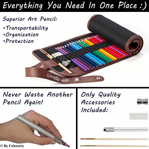 - A luxury canvas roll up bag to protect & organize your pencils giving you the freedom to color anywhere, in the park, countryside, on the train, wherever you get that creative urge.