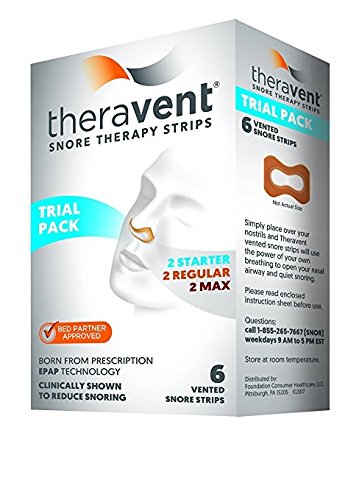 Studio : FOUNDATION CONSUMER HEALTHCARE Publisher : FOUNDATION CONSUMER HEALTHCARE Binding : Health and Beauty Product Description Theravent Advanced Nightly Snore Therapy is an anti-snoring device that helps people stop snoring. The treatment involves small adhesive devices that cover the nostrils. As you breathe in, Theravent's patented MicroValve Technology opens, allowing you to breathe in normally. Then, as you breathe out, the Micro Valves close to create a gentle pressure that naturally opens your airway and relieves snoring. 0