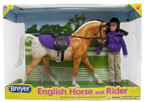 This casually-dressed English rider and her palomino Appaloosa horse are ready to hit the trails! Includes: 6" articulated rider, horse, saddle pad, English saddle and bridle.