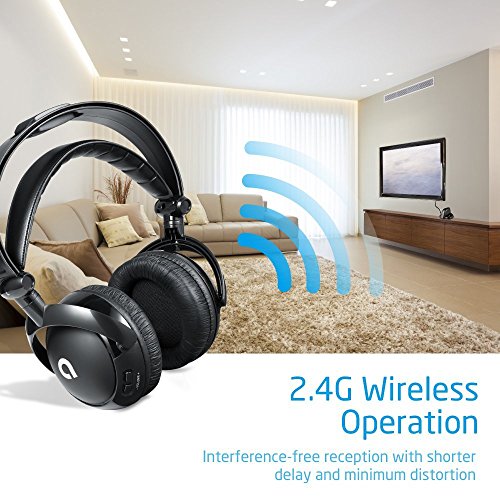 Wireless TV Headphones, AudioMX Over-Ear Digital RF Headphones with Transmitter and Charging Dock, Volume Control and Sound Isolation (RCA / 3.5 mm / 6.3 mm)