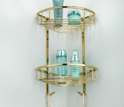DUAL TIER CORNER BRACKET GOLDEN BRASS BATHROOM SHELF SHOWER CADDY BASKET HOLDER
