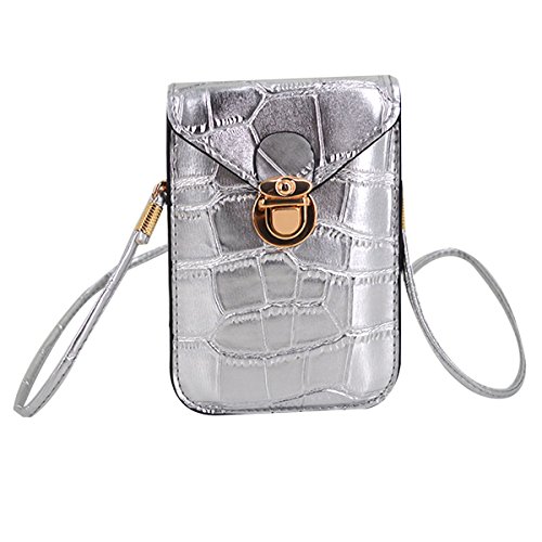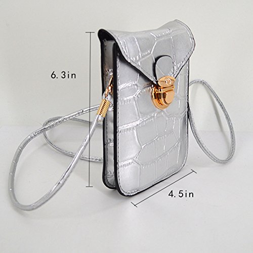 To own this mini cell phone purse bag will make you very eye-catching Closure type:Press button closure Comes with a long strap,could be a shoulder bag or crossbody bag With chic and cute design in alligator pattern style Size:6.3 x 4.5 in/16 x 11.5 cm,mini size for daily carrying,to hold cosmetics,lipsticks,power bank,cell phone,glasses and other little stuffs 0