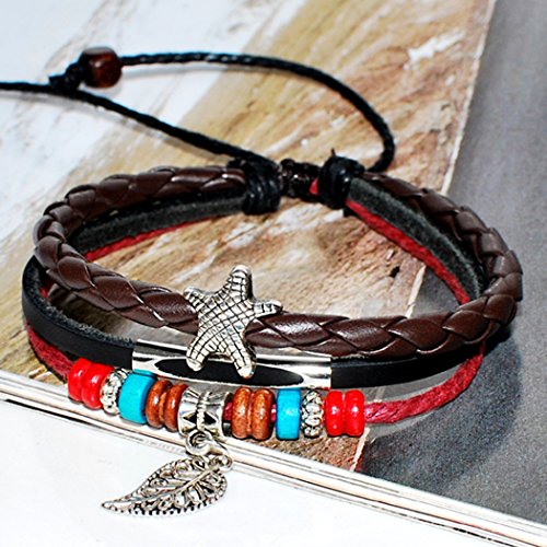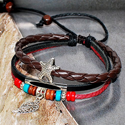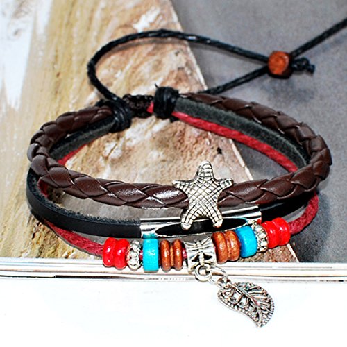 - Feature : Occident popular retro leather wrap bracelet / Easy for dressing match / Knitting part to show uniqueness of the bracelet / Unisex, suitable for men and women / Comes with exquisite gift bag