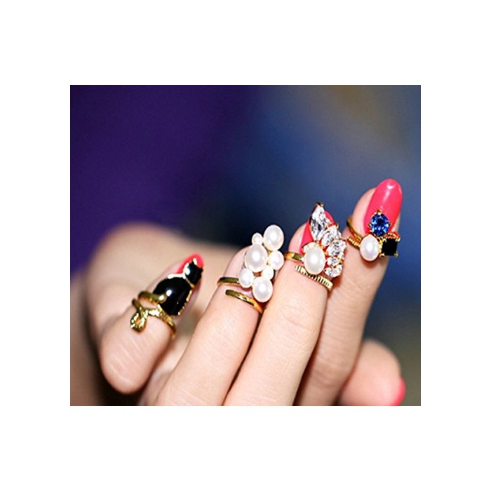 멋쟁이! 네일 링 쥬얼리 레이디스 네일 아트 손톱의 반지 팁(칩) 링 악세사리 4개 세트 katsuma5614