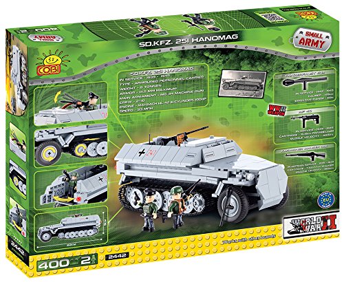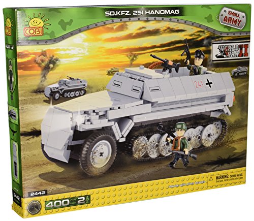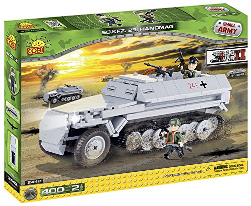 -. Binding : Toy -. Brand : COBI -. Department : unisex-child -. EAN : 5902251024420 -. Feature : Build a new adventure with COBI construction sets (each sold separately) / Build the German SDKFZ 251 Hanomag / This Small Army set contains 400 pieces and 2 figures / Features an armored fighting vehicle designed and first built by the Hanomag company during World War II / This item is a great addition to the extended Small Army collection -. IsAdultProduct : 0 -. Label : Cobi Toys, LLC -. Manufacturer : Cobi Toys, LLC -. Model : 2442 -. MPN : 2442 -. PackageQuantity : 1 -. PartNumber : 2442 -. ProductGroup : Toy -. ProductTypeName : TOYS_AND_GAMES -. Publisher : Cobi Toys, LLC -. Studio : Cobi Toys, LLC -. Title : COBI Small Army SD.KFZ. 251 Hanomag Building Kit -. Warranty : 90 day warranty against manufacturer defects