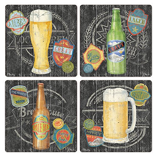 CoasterStone Craft Brew Absorbent Coasters (Set of 4), 4-1/4", Multicolor
