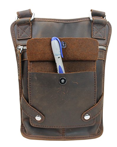 Vagabond Traveler Leather Pouch Kindle Sling Bag, Dark Brown, Small
