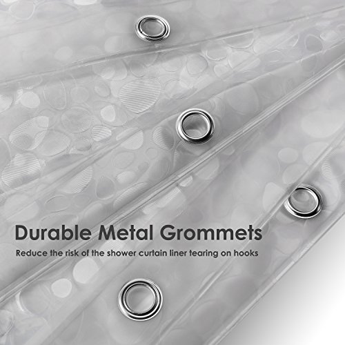 UNIQUE DESIGN: Unique back to nature 3D pebbles or snowflake design, protects your privacy but also serves as a fashion decoration. It’s a great choice for Christmas showers, bathtubs, home and hotels. And it can be used as shower curtain alone or a shower curtain liner.