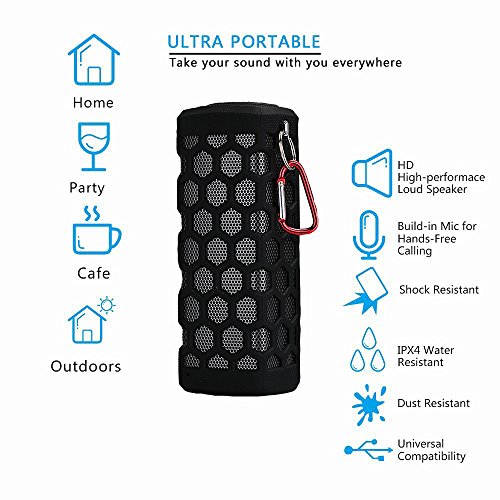 -. Feature : 3D Stereo Surround Hi-Fi Sound: Pair 2 SCS ETC D-series speakers via Bluetooth into L&R channel and enjoy the incredible 3D stereo surround Hi-Fi sound. / Power Bank for Emergency: 7000mAh polymer Li-ion rechargeable battery, 5V and 2.0A output to charge your smart phone and tablet, up to 15 hours playback time. / Easy and Quick to Pair: Advanced CSR Bluetooth V4.0 technology, connect speaker with wireless range up to 10 meters away from Bluetooth devices such as iPhone6/6s/SE, iPad, Samsung Galaxy S6/S7, Samsung Galaxy S6 Edge/S7 Edge, Galaxy Note4/5, Sony Z5, Nokia Lumia, HTC One, Nexus 7, Nexus 4 3.5mm Aux-in to connect directly to any non-Bluetooth devices. / Durable and Functional for Outdoor Sports: IPX4, dust-proof, dirt-proof, anti-scratch, drop-proof, shockproof speaker, you can relax and enjoy wonderful music in bathroom, sand beach, swimming pool. / Compact Wireless Bluetooth Speaker with Enough Volume: 2x2 inch total 10W dual powerful acoustic drivers play a full-range, abundant rich bass and loud sound in such a small portable size.