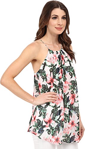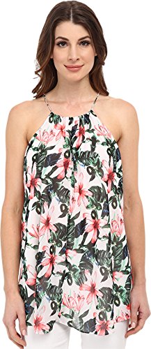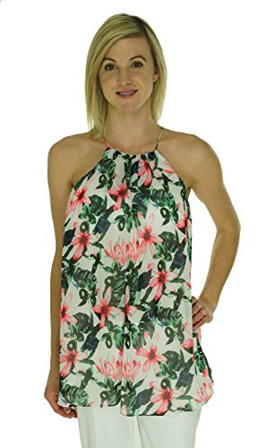 Vibrant floral print is featured all throughout. Halter neckline with racerback. Gathering at collar creates a fabulous drape. Sleeveless design. Halter neckline with racerback. Straight hemline. Lined. 100% polyester; Lining: 100% polyester. Machine wash cold, tumble dry low. Imported.