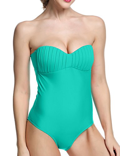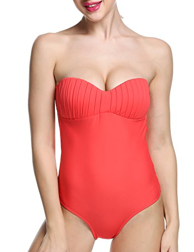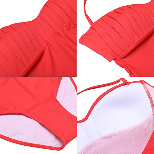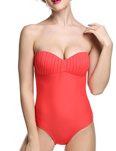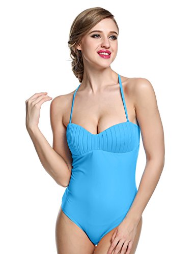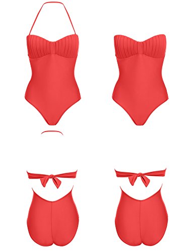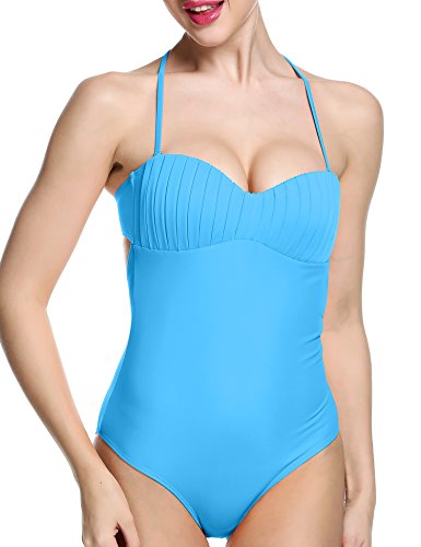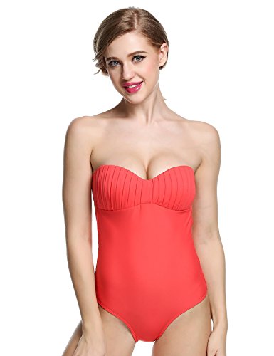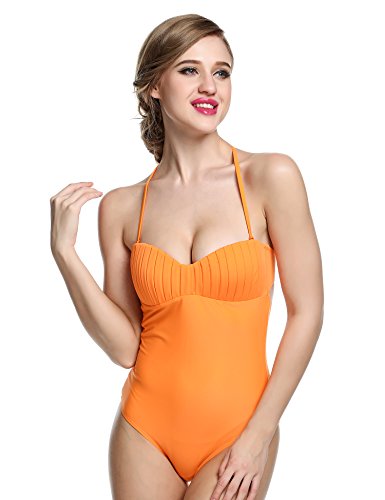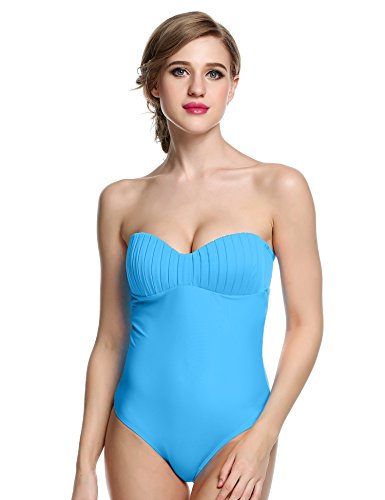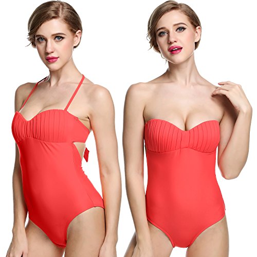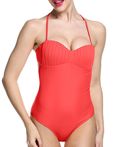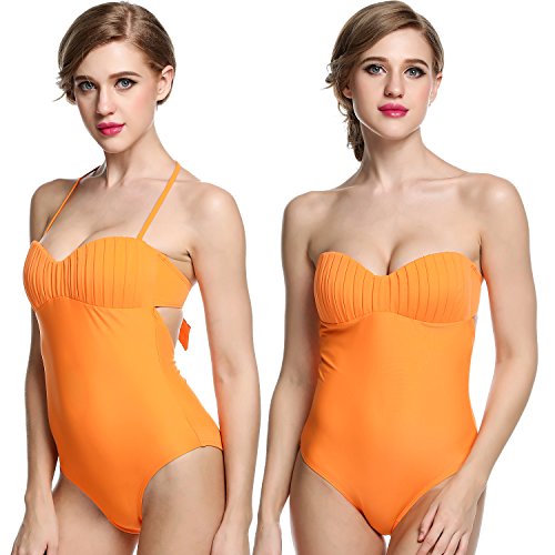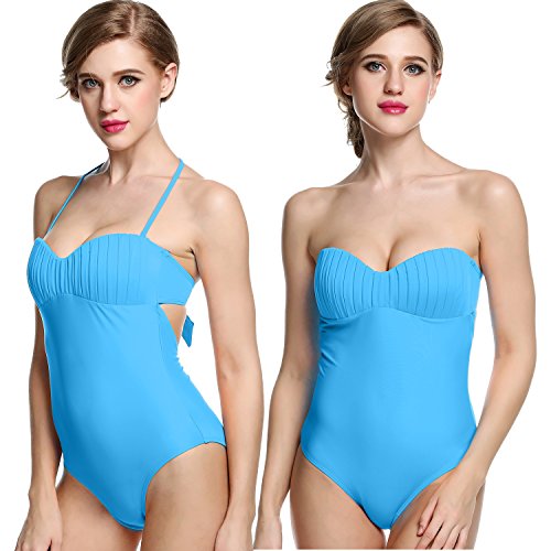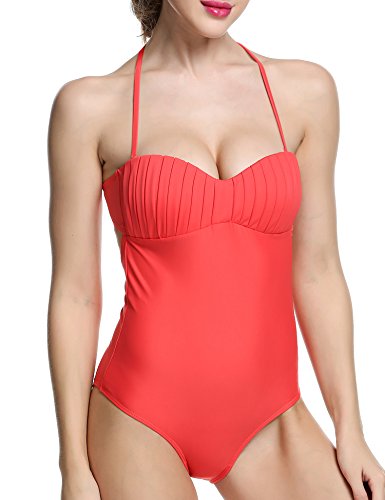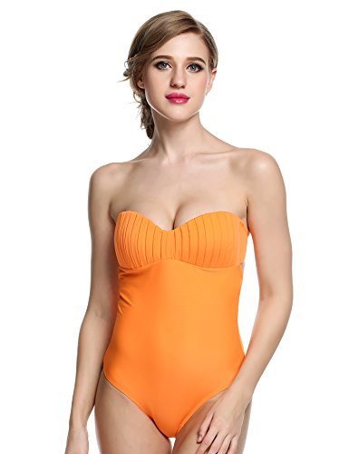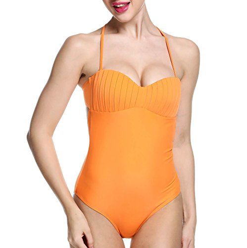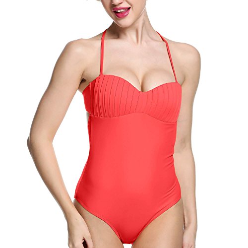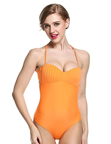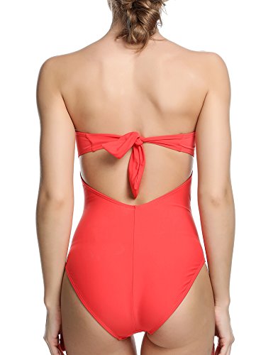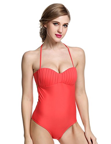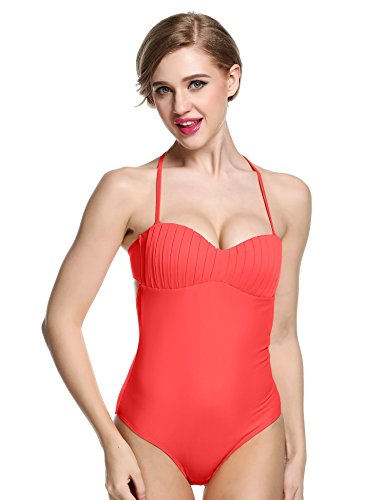 Binding : Misc. Product Description Ekouaer One Piece Bandeau Monokini Swimsuits for Women 100% Brand New. Brand: Ekouaer Material: 82% Polyamide, 18% Elastane 6 Colors: Sky Blue, Red, Orange, Green, Blue, Black Collar: Halter Neck Style: One-Piece Pattern: Solid Pad: Yes Back Fastening Occasion: Swim, Beach Garment Care: No Bleach, Low Iron, Hand Dry, Below 40¡æ Unique style, create a illusion for stunning curves, make you more beautiful, fashion, sexy and elegant. 5 Sizes available: Size: There are 5 sizes (8, 10, 12, 14, 16) available for the following listing. please allow 1-2cm differs due to manual measurement, thanks (All measurement in cm and please note 1cm=0.39inch) Measurement: Tag Size 10 ------- Chest 71-84cm/27.7-32.8" ------- Waist 57-71cm/22.2-27.7" ------- Length (without straps) 51cm/19.89" Tag Size 12 ------- Chest 73-88cm/28.5-34.3" ------- Waist 62-74cm/24.2-28.9" ------- Length (without straps) 52cm/20.28" Tag Size 14 ------- Chest 76-92cm/29.6-35.9" ------- Waist 64-76cm/25-29.6" ------- Length (without straps) 54cm/21.06" Tag Size 16 ------- Chest 81-96cm/31.6-37.4" ------- Waist 69-84cm/26.9-32.8" ------- Length (without straps) 57cm/22.23" Package Content: 1 x Women One Piece Swimsuit